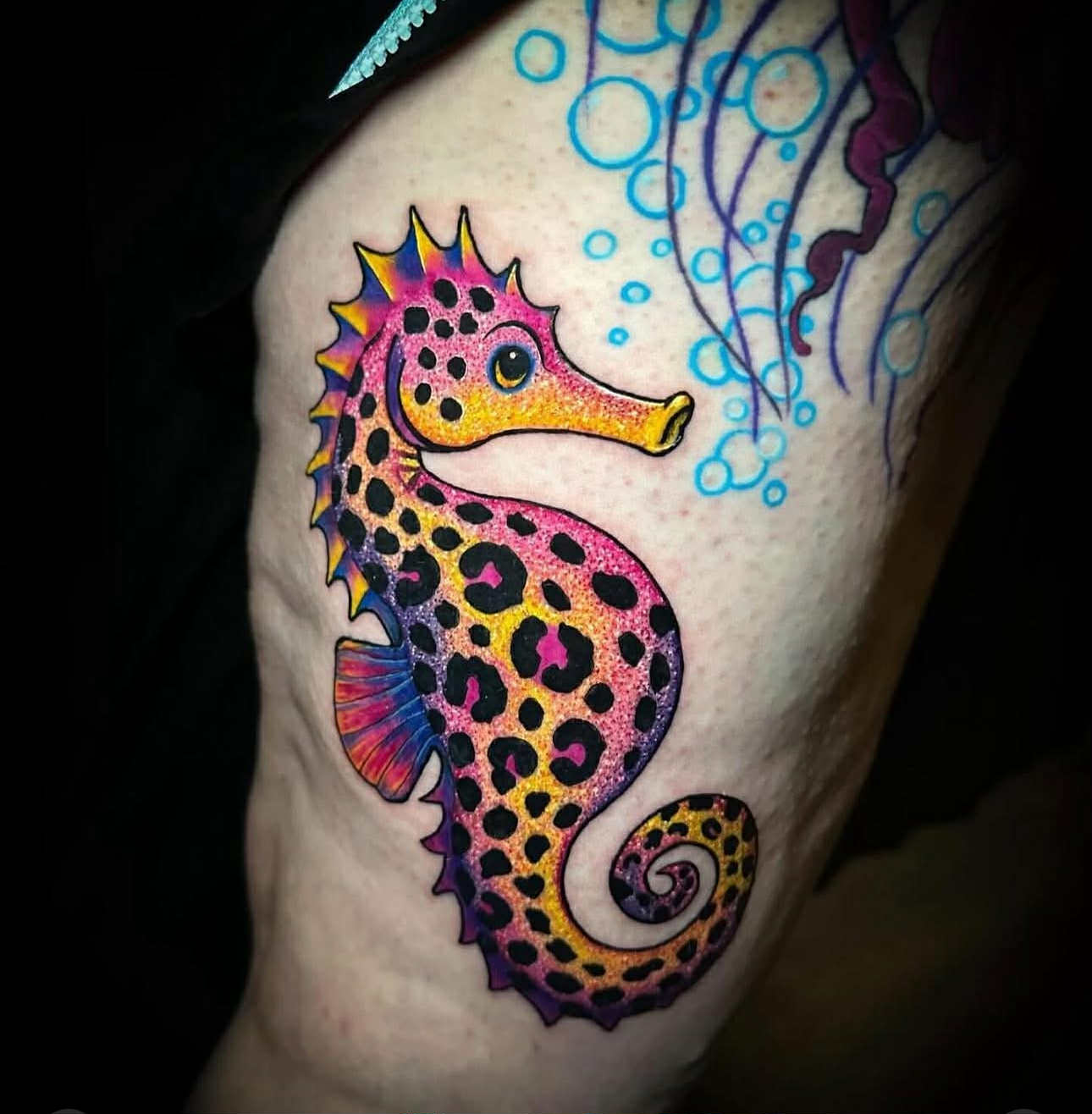 In just at one and a half years of tattooing, Sarah Fetla has already had her work featured in tattoo magazines and continues to grow her craft every day. Starting in permanent makeup, and now creates everything from bold, bright, glittery designs to clean, delicate fine-line work. She travels nationwide with her partner for conventions and guest spots, bringing her passion for art wherever she goes — all while homeschooling her son and turning each trip into an adventure. Versatile, driven, and creative, Sarah brings heart and dedication to every piece she tattoos. She genuinely cares about her clients as people , and will help you design something meaningful! She can’t wait to work with you and book something unforgettable!